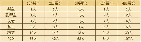 帮会职务有:帮主、副帮主、长老、堂主、精英和帮众六种职务。