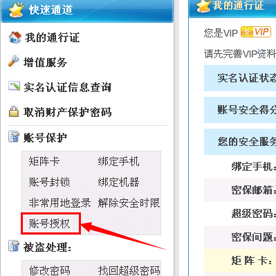 (1)玩家在龙武官网http://passport.q1.com登录通行证,进入【我的通行证里】的【账号保护】中设置【账号授权】;