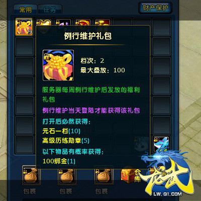 【新增功能】:1、新增“例行维护礼包”福利,凡在例行停机维护完成到当天24:00期间登陆,30级以上的玩家,都可以通过邮件获得“例行维护礼包”。