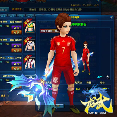 3、【商城】新增时装【我爱世界杯:五星巴西】、【我爱世界杯:德国战车】、【我爱世界杯:西班牙斗牛】和【999朵红玫瑰】、【亲亲宝贝】、【小熊抱抱】等物品出售。
