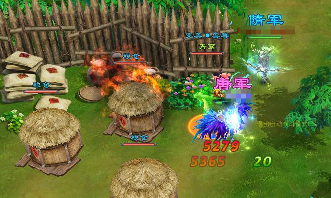 所有参加活动的玩家会被分成两个阵营,分别为“隋军”与“唐军”。在20分钟内,玩家与战友合作抢夺火把,然后烧毁敌军三个粮仓就可获得胜利。如粮仓均未烧毁,则看哪个阵营的余量多,则算获胜。如果余粮也一样,则是杀人数量多的一方取得胜利。否则平局。
