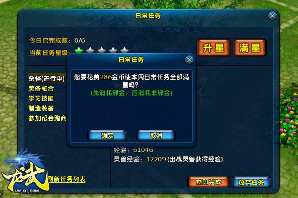 很显然,任务极为简单,几乎没有任何难度,对于手头宽裕一点的玩家而言,用钱升到满星再花钱完成就可以获得可观的经验了。而且一次性将全部任务升到满星花费也不算高(不到300金币)。